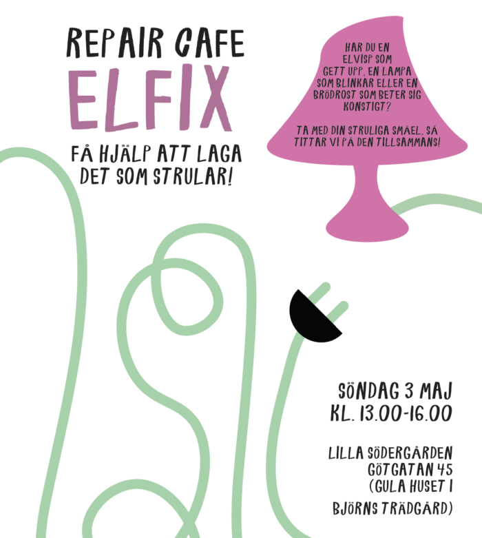 Repair Café är en öppen mötesplats för alla som vill laga och skapa. Verktyg, handledare och material finns på plats, du tar med det som behöver fixas eller förnyas. Tillsammans delar vi kunskap och ger våra saker ett längre liv!
