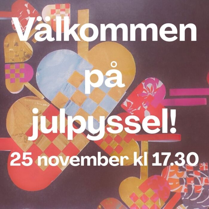 Kom och skapa prydnader, julkort, julgranshängen med mera! Vi använder oss av papper och med olika tekniker gör vi juligt pynt! Pedagoger från Södergården är på plats och ger inspiration och guidning.