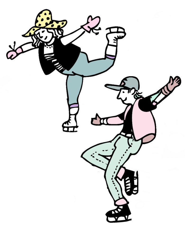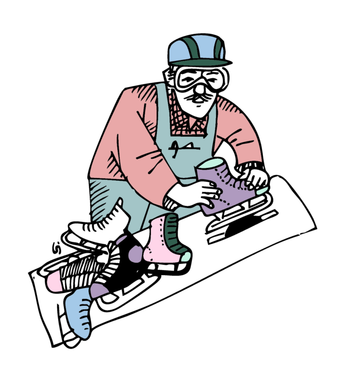 - Skridskor och ishockeyklubbor
