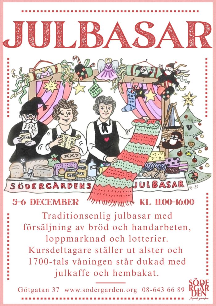 Det är ett kul och fint sätt att stötta Södergården samt att vara i ett sammanhang med julstämning! Du kan hjälpa till innan, under och efter basaren med att pynta, packa upp och ner saker, vara i serveringen och mycket annat! Hör av dig till 08-643 66 89 eller info@sodergarden.org om du vill veta mer eller anmäla ditt intresse.
